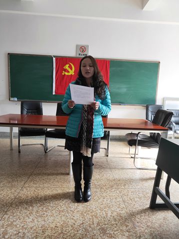 宣誓完毕,预备党员代表阮兴娟同志作了表态发言,她表示能作为预备党员代表发言十分激动,在今后的学习、工作、生活中会更加严格要求自己,牢记入党誓词,坚定理想信念,为共产主义事业和中华民族伟大复兴的中国梦而努力。张欣禹同志代表入党积极分子进行发言,他汇报了自己的思想、学生、工作、生活情况,表达了希望早日加入党组织的决心和信心。