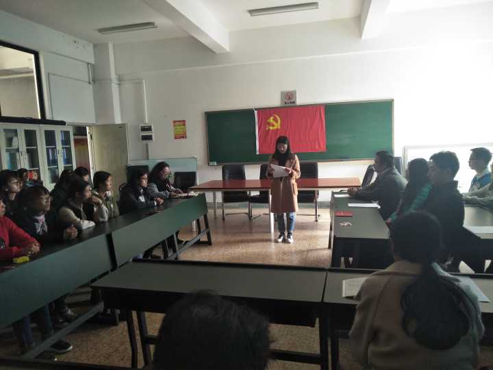 2019年1月7日,数学系党总支在惟真楼1414会议室举行预备党员入党宣誓仪式,党总支书记罗隽雁同志、副书记王涛同志、周兴伟同志、支部书记、9名预备党员、部分入党积极分子代表参加了仪式。仪式由学生一支部书记施菲同志主持。