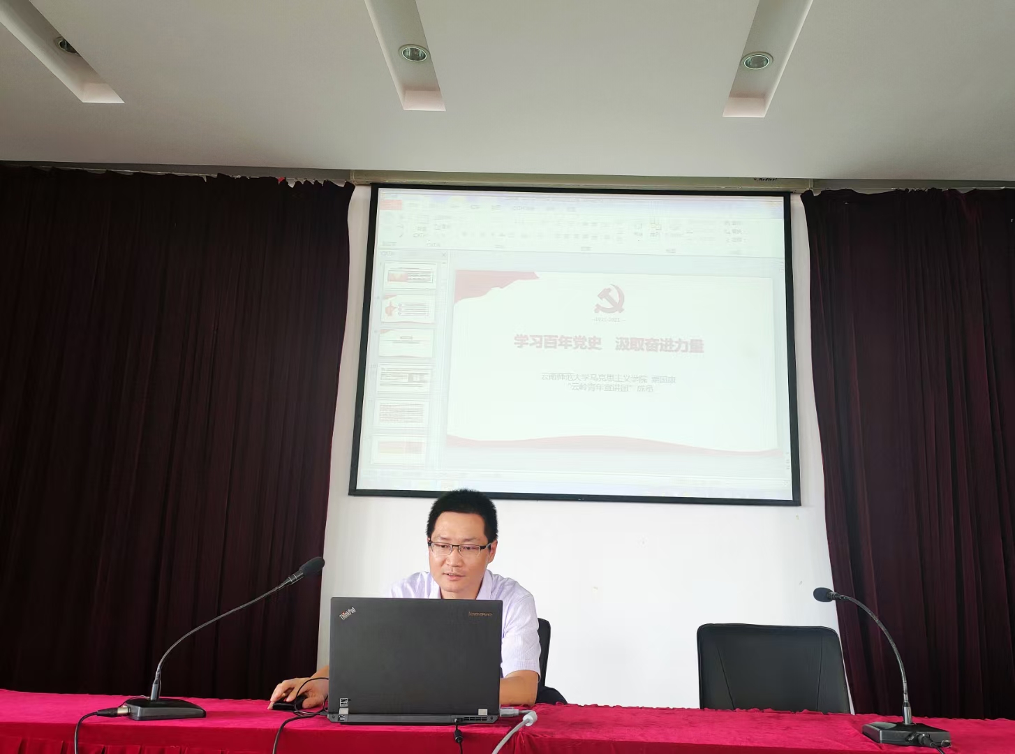 5月28日,数学学院举办党史学习教育专题培训暨数学学院“万名党员进党校”培训开班仪式;培训题目《学习百年党史 汲取奋进力量》,主讲为云岭青年宣讲团成员、昆明市委宣讲团成员、云南师范大学党史学习教育教师宣讲团成员、云南师范大学马克思主义学院党委委员、教职工第一党支部书记粟国康博士,数学学院师生党员参加专题培训。