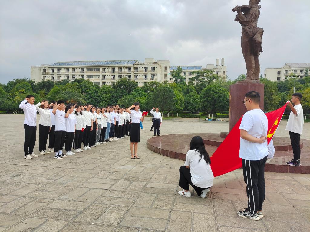 7月1日上午,在中国共产党成立101周年之际,数学学院党委在聂耳广场聂耳塑像前举办2022年上半年新党员入党宣誓仪式,数学学院党委书记秦丽娟,组织员陈正祥,学生支部书记施菲、周宇、尹利方及29名新党员参加入党宣誓仪式。