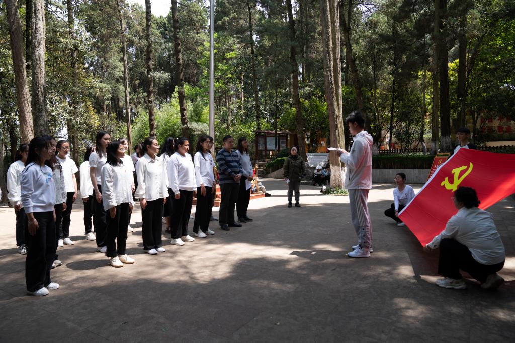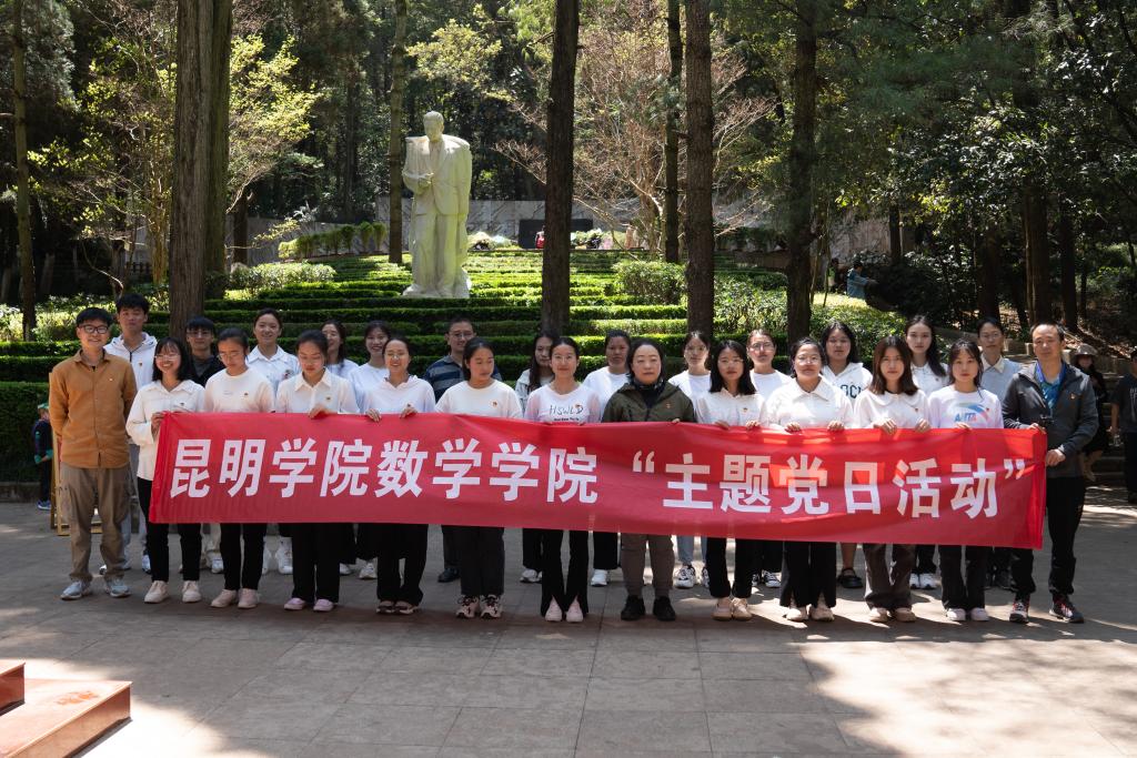 4月1日,数学学院在西山森林公园聂耳墓聂耳塑像前组织开展2022年下半年新党员入党宣誓仪式暨四月份主题党日活动,数学学院党委副书记俞安、党政办主任周宇、学生支部书记施菲、盛枝泉、尹利方及30余名师生党员参加活动。