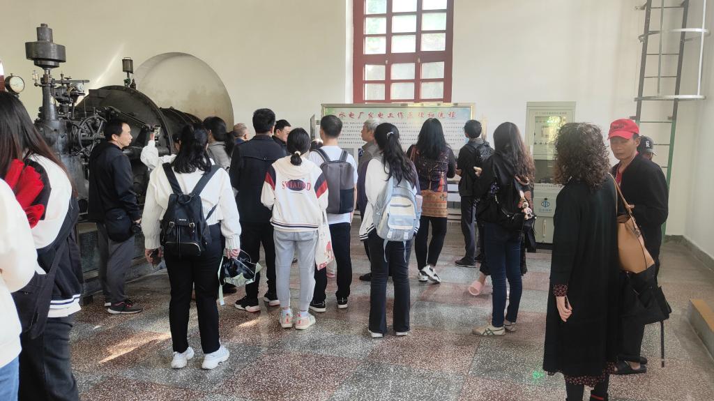 讲解员带领师生参观了战备防空洞、发电车间、炮楼、水电博物馆、日军轰炸留下的弹坑等建筑和历史文物,了解了石龙坝水电站的发展历程,感受了当时国力孱弱条件下水电站建设背后的艰辛,领悟了中国水电人敢为人先、不屈不挠、艰苦奋斗、自力更生、尊重科学的精神与实业报国、自强不息的民族气节。