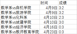 下面是我系女排一路以来过关斩将的成绩一览表: