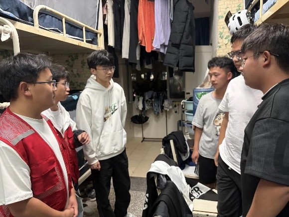 “寝”心相聚·朋辈相伴:深入新生宿舍,开展心理健康疏导、宿舍关系协调、安全宣传等全维度帮扶。排查违规电器,普及防骗知识,助力新生快速融入大学生活。