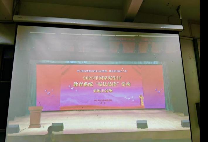 本次活动的主题是“学习贯彻习近平法治思想,推动宪法深入人心”。数学学院组织无课班级70余人,在博识楼1002统一通过教育部全国青少年普法网(qspfw.moe.gov.cn)观看直播。在晨读环节,全体观看学生一起进行晨读,对宪法的相关内容、公民的义务权利、国家安全等情况有了更深入的了解。