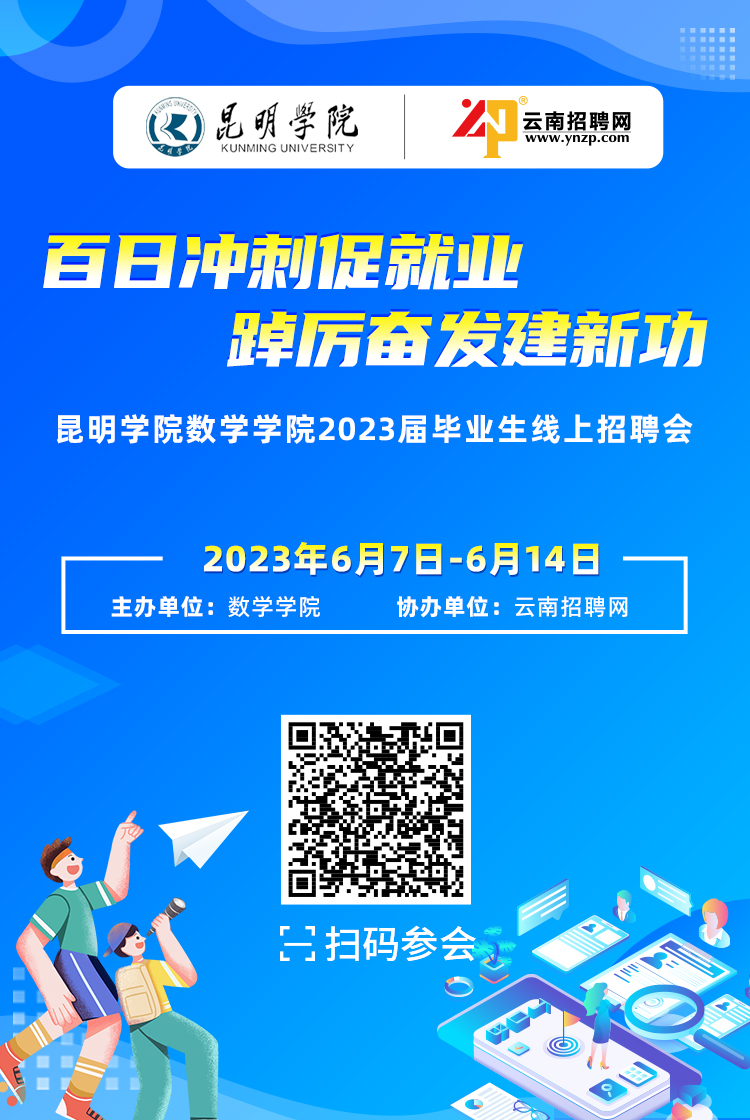 为充分做好2023届毕业生离校前百日冲刺促就业工作,为毕业生提供优质就业服务,全力促进毕业生顺利就业,6月7日-14日数学学院与云南招聘网合作举办“百日冲刺促就业 踔厉奋发建新功”2023届毕业生线上招聘会。
