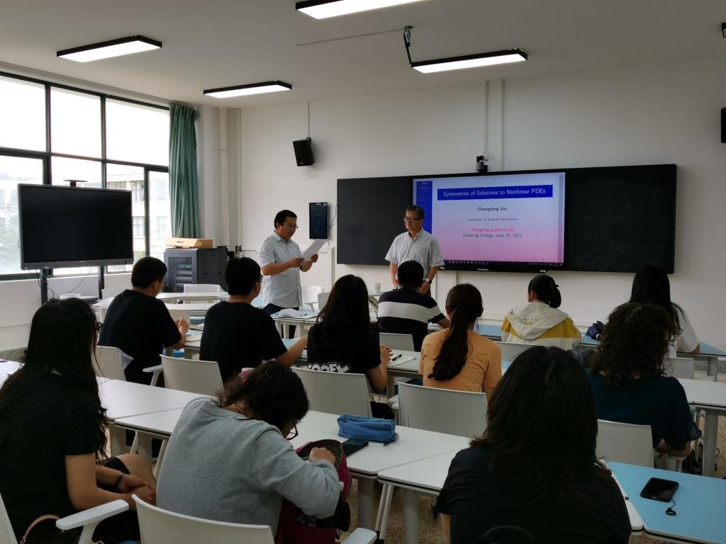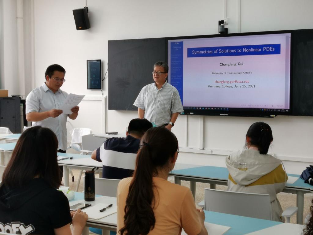 2021年6月25日,在惟真楼1406,应数学学院院长周兴伟教授的邀请,美国德克萨斯大学桂长峰教授到数学学院开展“Symmetries of Solutions to Nonlinear PDEs”学术讲座,数学学院全体博士、副高以上教师及学院已考取硕士研究生的部分大四学生出席了讲座。